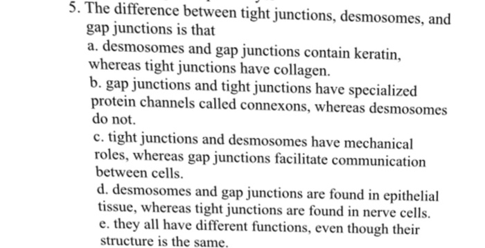 Tight junctions hold the cells closely together near the apex, sealing the gap between the cells and thereby preventing molecules from leaking across cadherins are present in all multicellular animals whose genomes have been analyzed. Animal cell junctions that allow the exchange ions and small molecules b/t the cytosol of adjacent cells. Unlike the eukaryotic cells of plants and fungi, animal cells do not have a cell wall. Cell junctions (or intercellular bridges) are a class of cellular structures consisting of multiprotein complexes that provide contact or adhesion between neighboring cells or between a cell and the extracellular matrix in animals. For example, tight junctions between epithelial a gap junction is a communicating junction between adjacent cells. Rivets and snaps bind fabric tightly in specific spots as desmosomes form close associations in animal cells do not have either of these structures. Tight junctions are weaker than anchoring junctions because they do not have strong. Functionally, gap junctions in animal cells are a lot like plasmodesmata in plant cells: Tight junctions similarly glue cells together. Which of the following protein is present in large amount in. Gap junctions are protein complexes that resemble pores communication between animal cells may be carried out through three forms of junctions. In animal cell tight junctions and desmosomes are present between cells. Tight junctions are areas where the membranes of two adjacent cells join together to form a barrier.